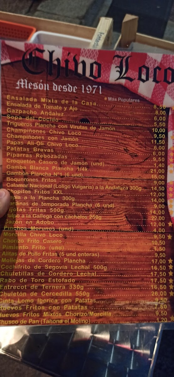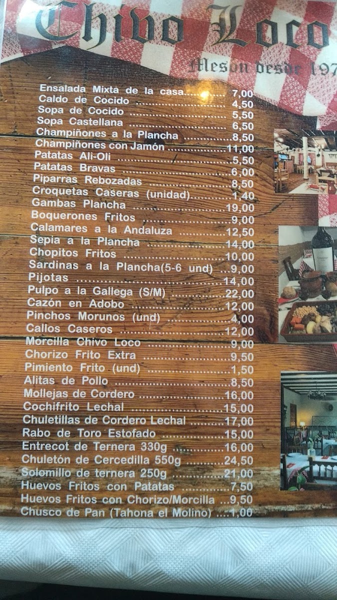 Welcome to Chivo Loco, a gem nestled in Cercedilla, Madrid, where the essence of Spanish cuisine comes alive. This charming meson offers a delightful blend of traditional dishes and warm hospitality, making it a favorite for both locals and visitors. Renowned for its tapas, Chivo Loco serves a variety of mouthwatering options—from crispy ham croquettes to tender garlic lamb sweetbreads. Diners rave about the grilled prawns and superb rib eye, each plate crafted with care and served with a smile.